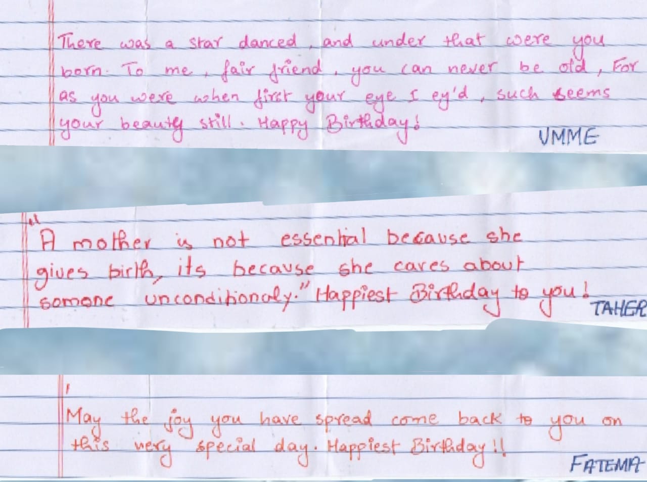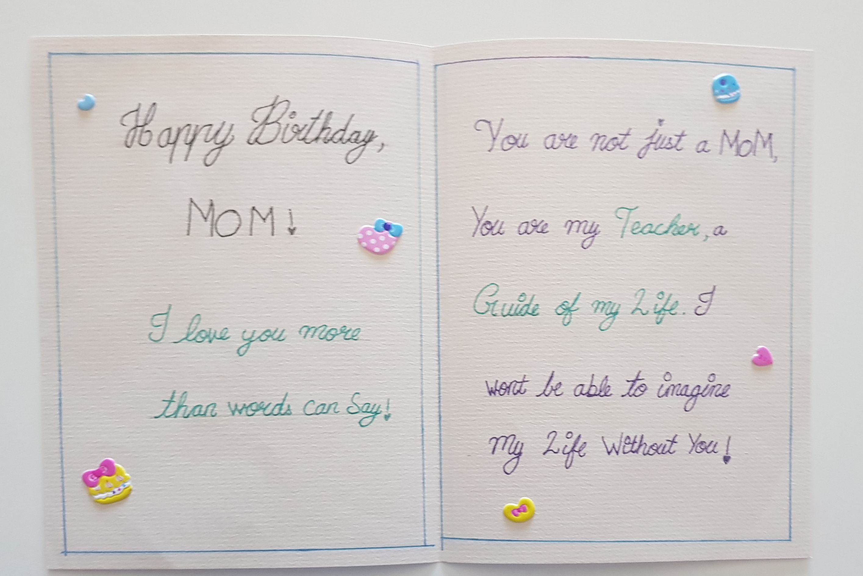 My little angel got the ‘Birthday Card’ she had made at night and showed it to her father, announcing proudly that I am the 1st one to wish mamma at midnight 12:00 O’clock. He looked at me, and I couldn’t stop myself but blush.